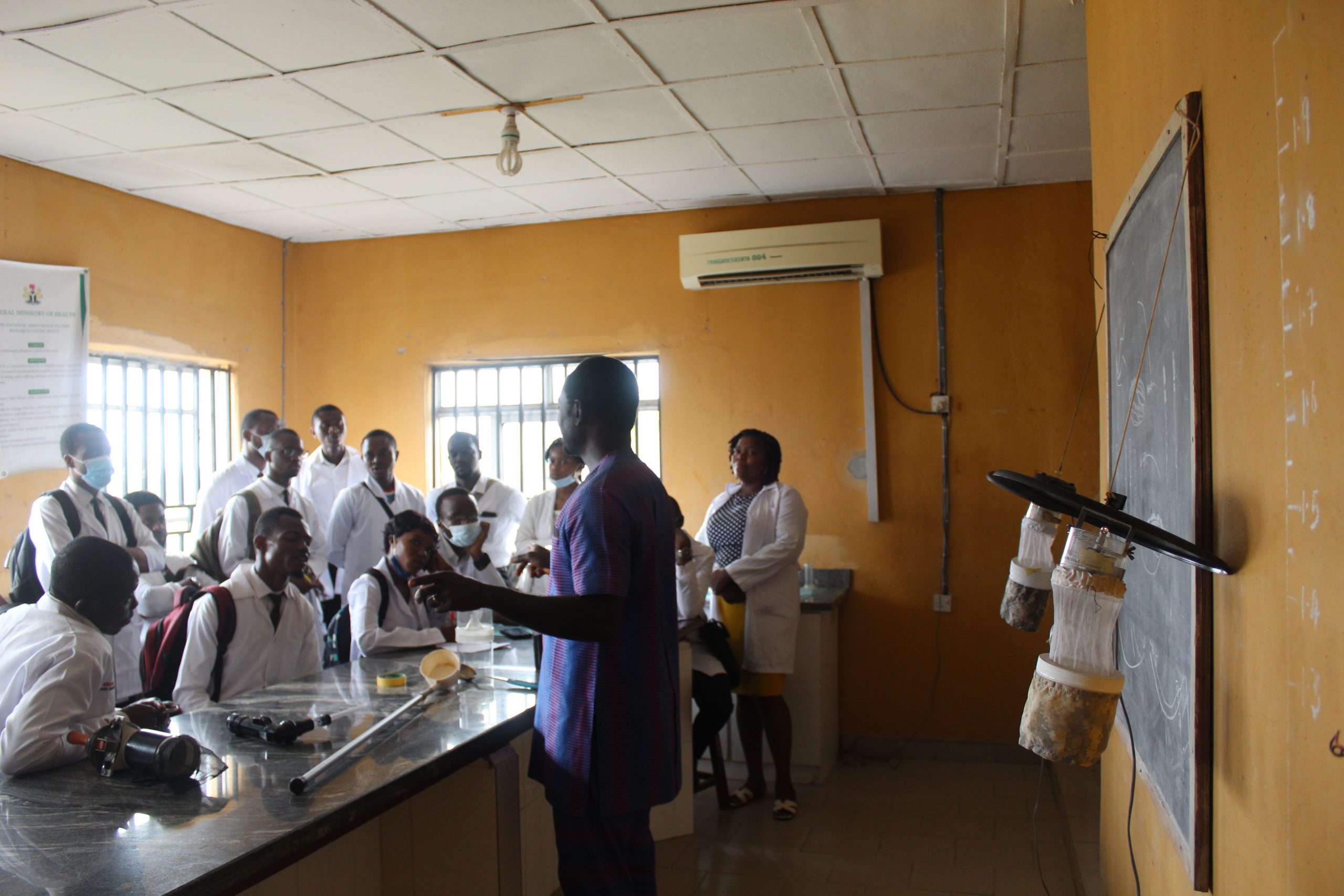 Recently, 500 level Students of Community Medicine, University of Nigeria Enugu Campus, (UNEC) came on a tour of NAVRC; to gain knowledge of the different research activities undertaken by the Centre in containing the spread of vector borne diseases. The students had opportunities of visiting the different research Sections and the Insectary where NAVRC Staff  were on ground at each point; to teach and demonstrate to the students how some of the research activities were carried out in the different sections visited. They were also taken round the different mosquito colonies and laboratories where they were shown the different  methods of catching mosquitoes, their feeding habits, and how their study aid in researches.